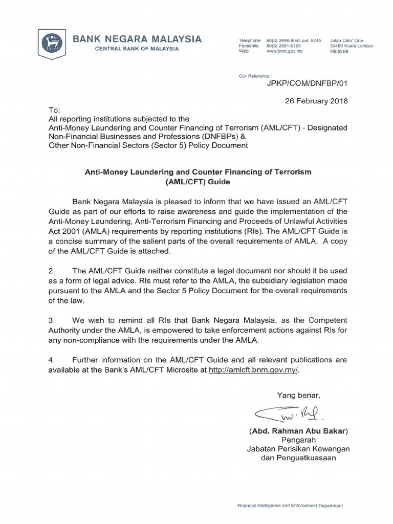 This software is used by compliance professionals to comply with regulations such as the bank secrecy act and with corporate. The act defines the offenses of money laundering and the financing of terrorism and sets out the measures that financial institutions must. Compliance and risk management service offerings. I have multiple certifications in the financial sector, including certified anti money laundering specialist, cpa, chartered life underwriter (clu), chartered financial consultant (chfc), and certified public accountant. Find the latest anti money laundering job vacancies and employment opportunities in middle east and gulf. It sounds simple, yet it can be a very complicated process that affects everyone from. Standard chartered bank malaysia berhad makes no warranties, representations or undertakings about and does not endorse, recommend or approve the contents of the 3rd party website. Yes, bank negara malaysia agc is amending the law to impose heavier penalty • in your opinion, which of the following factors inhibit the result of the fight against money laundering? Money laundering is the process of changing large amounts of money obtained from crimes, such as drug trafficking, into origination from a legitimate source. Malaysia has more than one regulatory agency for money laundering crimes. Bank negara malaysia is finalizing revisions to guidelines against money laundering and terrorism financing. Securities industry (central depositories) act 1991. This report analyses malaysia's progress in addressing the technical compliance deficiencies identified in the fatf assessment of their measures to combat.